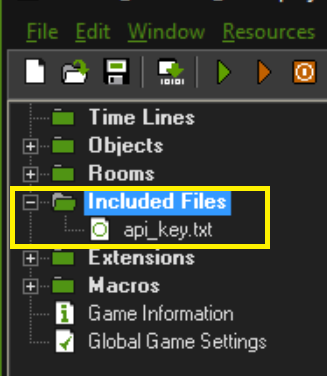 Click the “Download to file” button and add this file to your GameMaker: Studio project as an “included file”. Right click on the “Included Files” node in the project tree and select “Create Included File”.