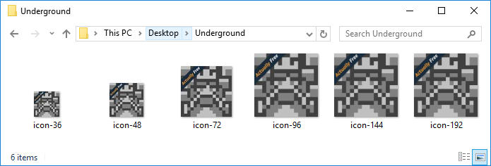 Your Underground game will need to use a custom sash. You can find out more about this here. I’ve gone ahead and created icons for Android’s 6 sizes (192, 144, 96, 72, 48 and 36) with the Underground sash template.