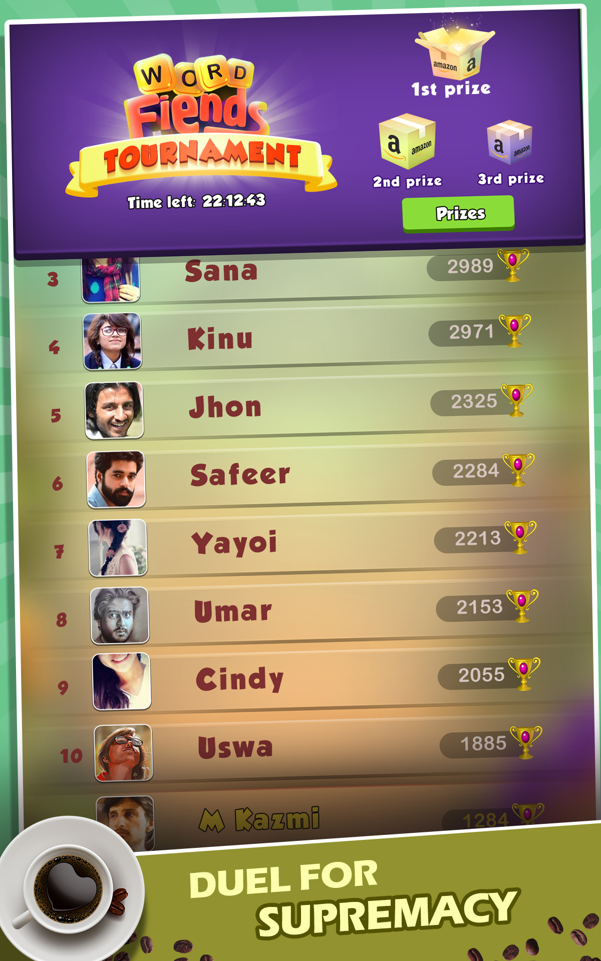 To do this, they integrated Amazon GameOn to easily run tournaments with real-world prizes each weekend. According to Faizan Faisal, product manager at Mindstorm Studios, "GameOn is all about giving developers another competitive dimension for their games, so it was a no-brainer for us to choose GameOn for Word Fiends." With the integration, Mindstorm saw a huge spike in engagement and monetization.