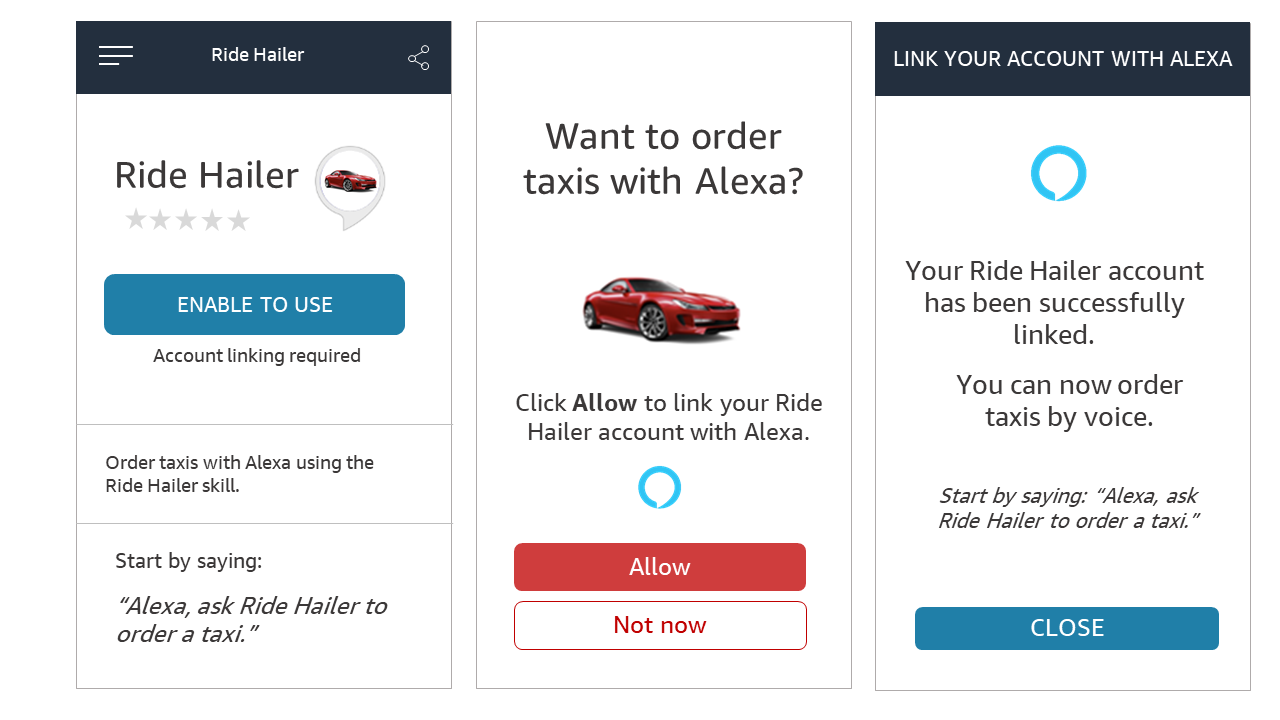 - If your app isn't installed: This is the Alexa-app only account linking experience described in Choosing an account linking flow.