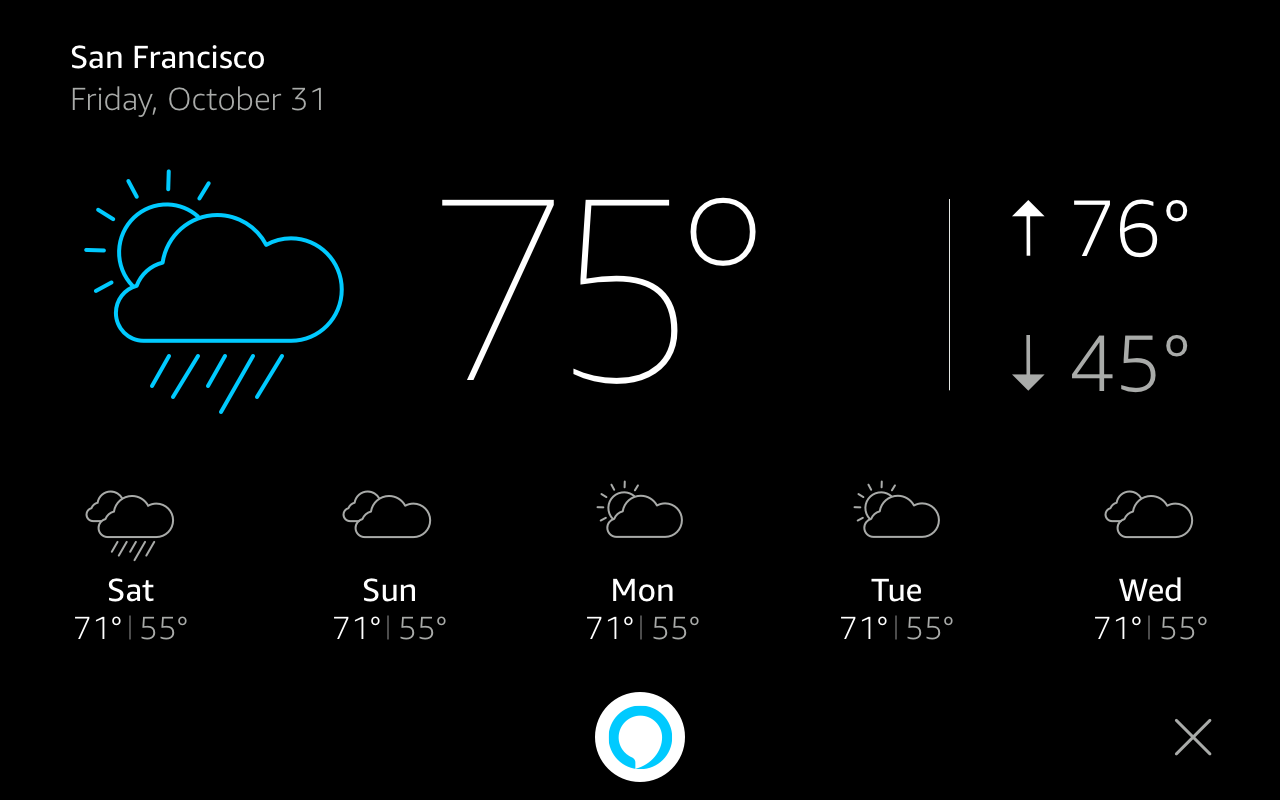If you observe the code carefully, you’ll see “BodyTemplate2” as the Display Card type. AVS offers five different Display Card templates, including Wikipedia entries, Shopping Lists and To-Do Lists, Calendar, Weather, and “Now Playing” information. See our design guidelines for tablets and TVs to learn about these templates. Adapting these render templates for “Night Mode” viewing is a personal favorite.