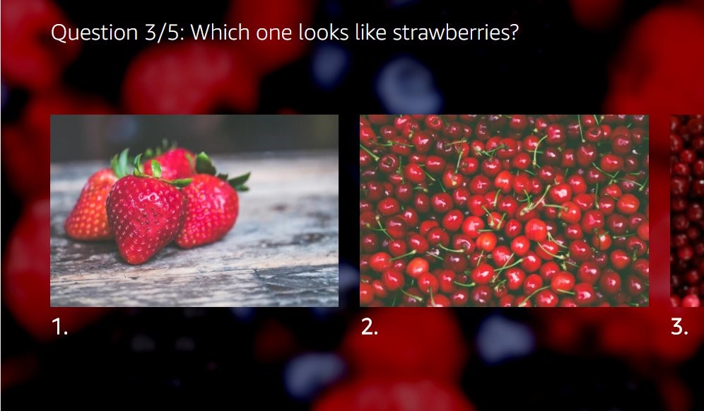 When building voice-first experiences for Echo devices with screens, you have to consider your graphical user interface (GUI) in addition to your voice user interface (VUI) during the voice design process. To help you get started, we developed a new skill template called Berry Bash for quiz and dictionary skills for Echo Show and Echo Spot. In this post, we’ll walk you through the skill template. You can also check out the skill template in the Alexa repository on GitHub to start building.