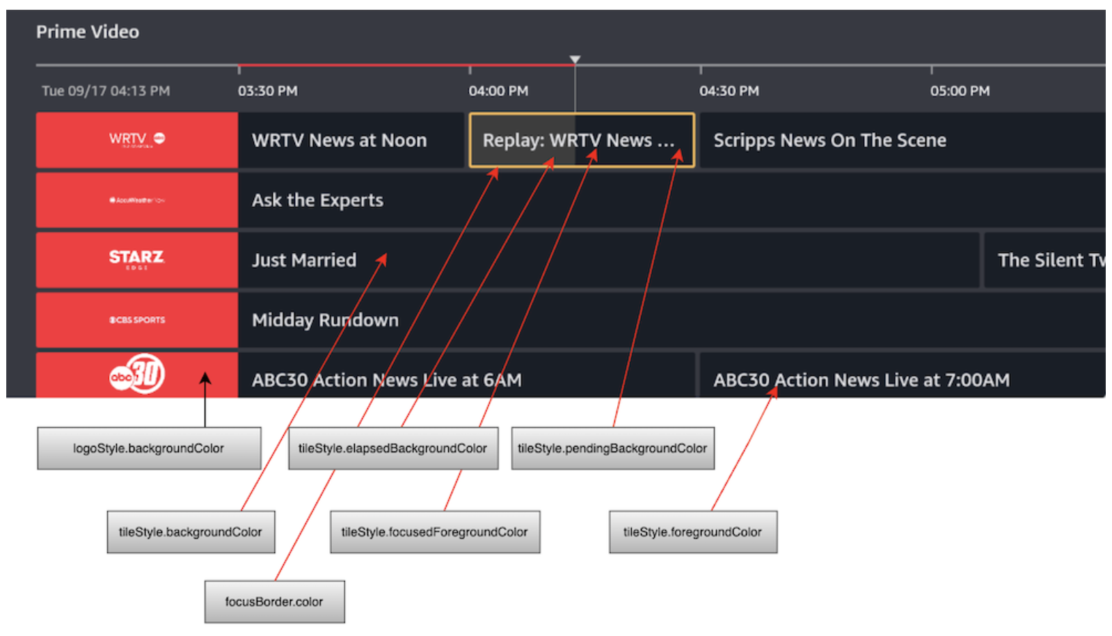 EPG(電子番組表)は、VUICライブラリに含まれているカスタムビューコンポーネントです。EPGコンポーネントでは、TVデバイスのリモコンを使用したD-Padコントロールがサポートされます。このガイドでは、ダウンロード可能なサンプルアプリを紹介し、EPGの使用方法の詳細について説明します。
