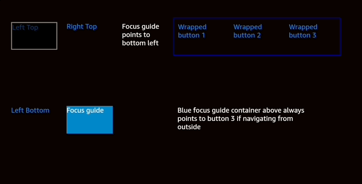| trapFocus* (Up, Down, Left, Right) | Prevents focus escaping from the container for the given directions. |