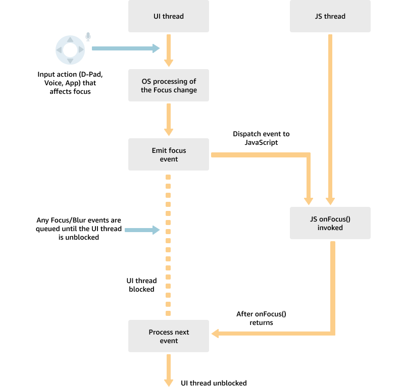 In addition, to avoid blocking the UI thread longer than necessary, the app shouldn't have any long running logic as part of the onFocus() or onBlur() callbacks.